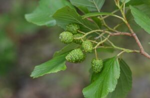 – L’aulne glutineux (Alnus glutinosa), un arbre très commun dans les zones humides