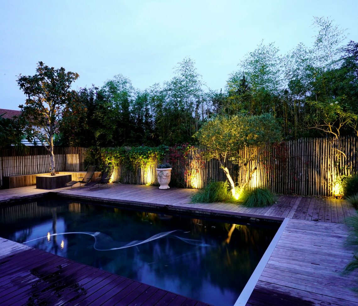 Les éclairages mettent en exergue vos plantations, valorisent vos arbres, font ressortir vos massifs. Ils vont vous faire découvrir votre architecture paysagère avec une nouvelle perspective, un peu comme s’il s’agissait d’un second jardin, d’un jardin nocturne…